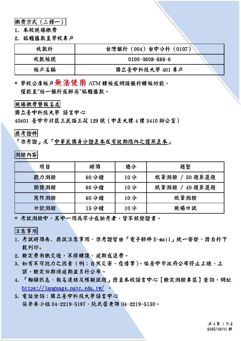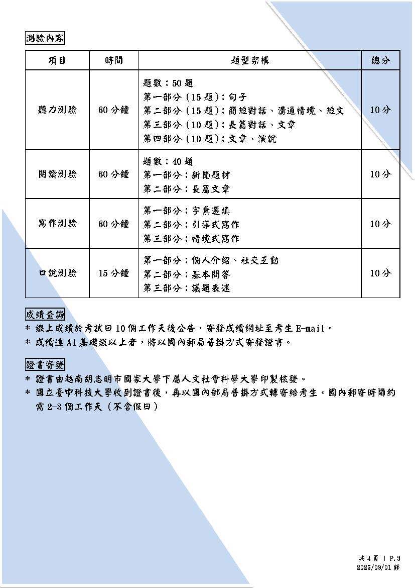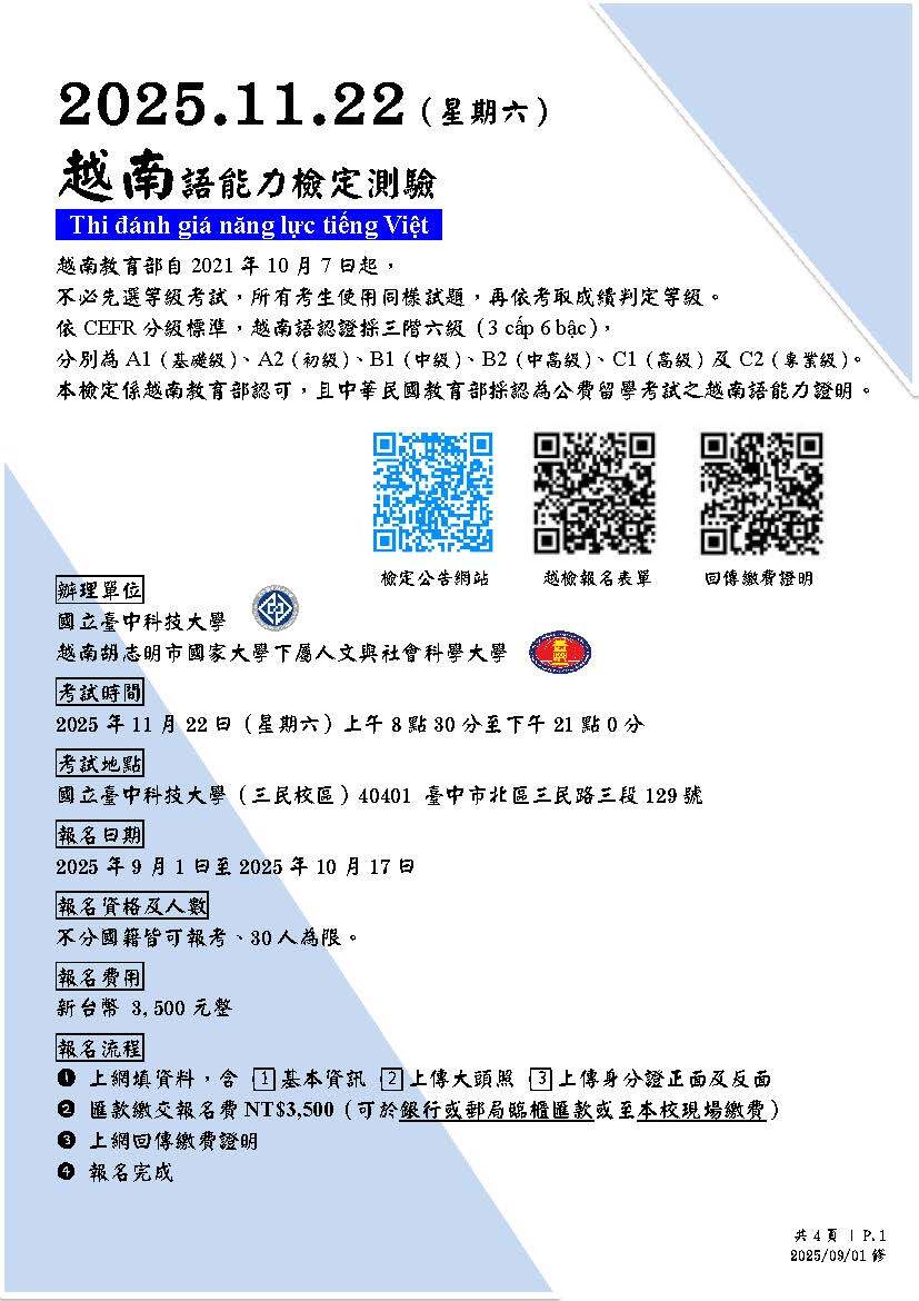 [轉知] 越南語能力檢定測驗 改於11月23日舉行